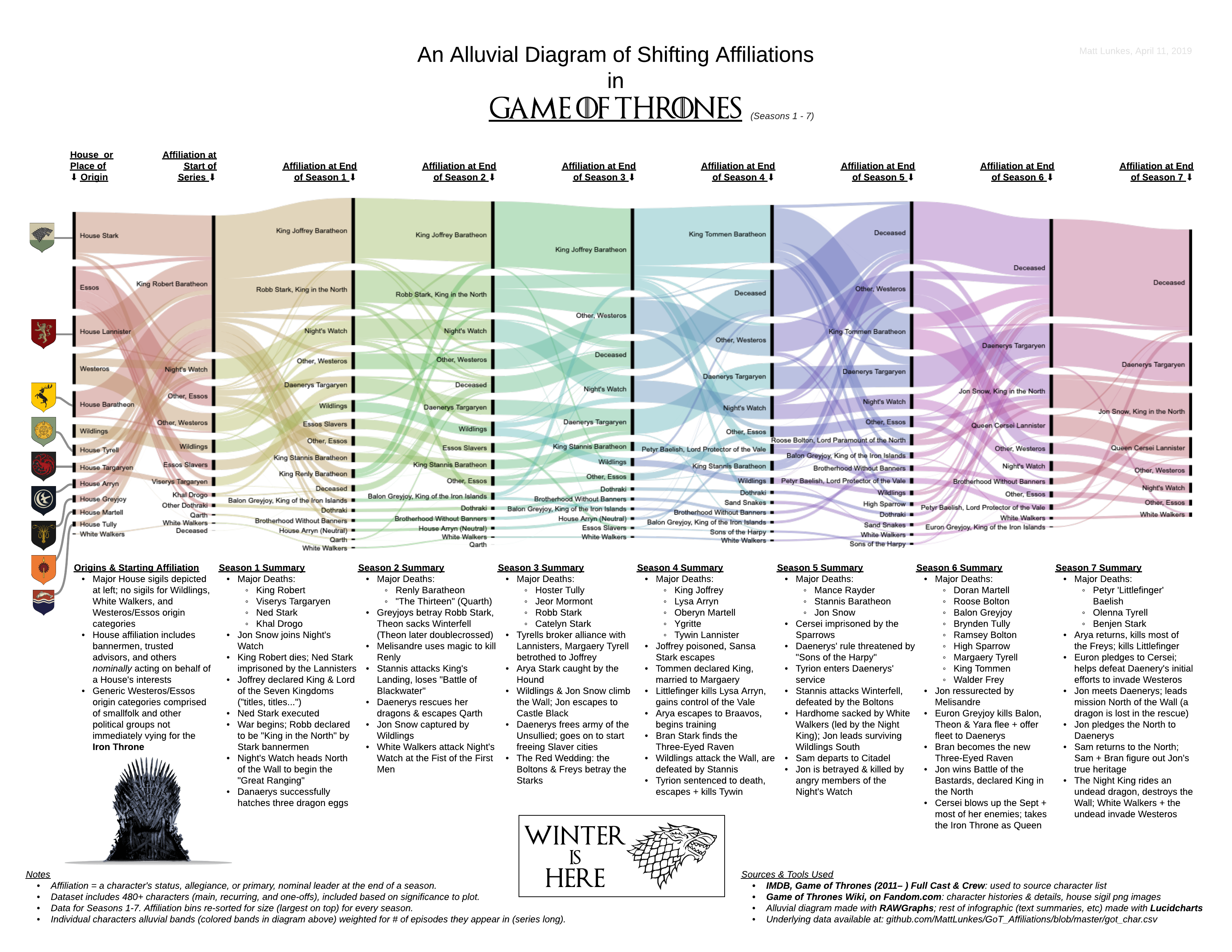 ゲーム・オブ・スローンズ(シーズン1-7)における所属の変化