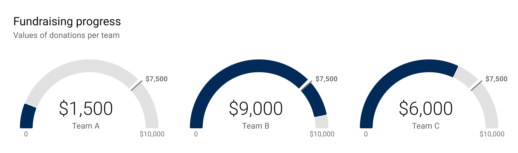 ゲージ・チャートは、主に 単一の指標(KPIなど) を評価するために使用されます。 具体的には、次のような用途に適しています。