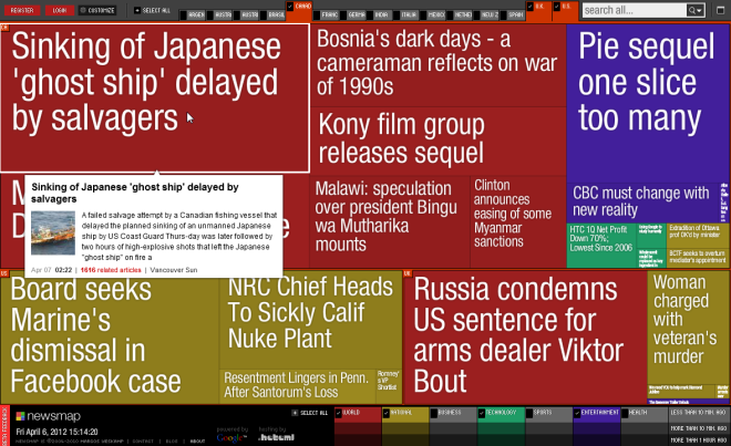 - Newsmap:PCブラウザ上でニュースを俯瞰する可視化実験