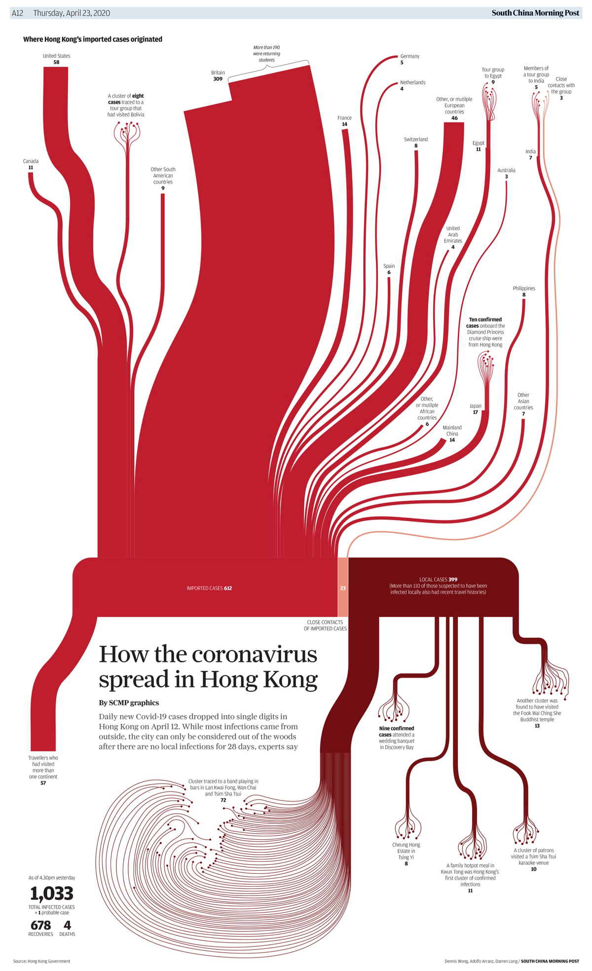 South China Morning Post の「How the coronavirus spread in Hong Kong」(2020)