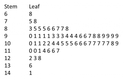 | 中央値 | 葉を順に数えることで中央値を求められる。 |