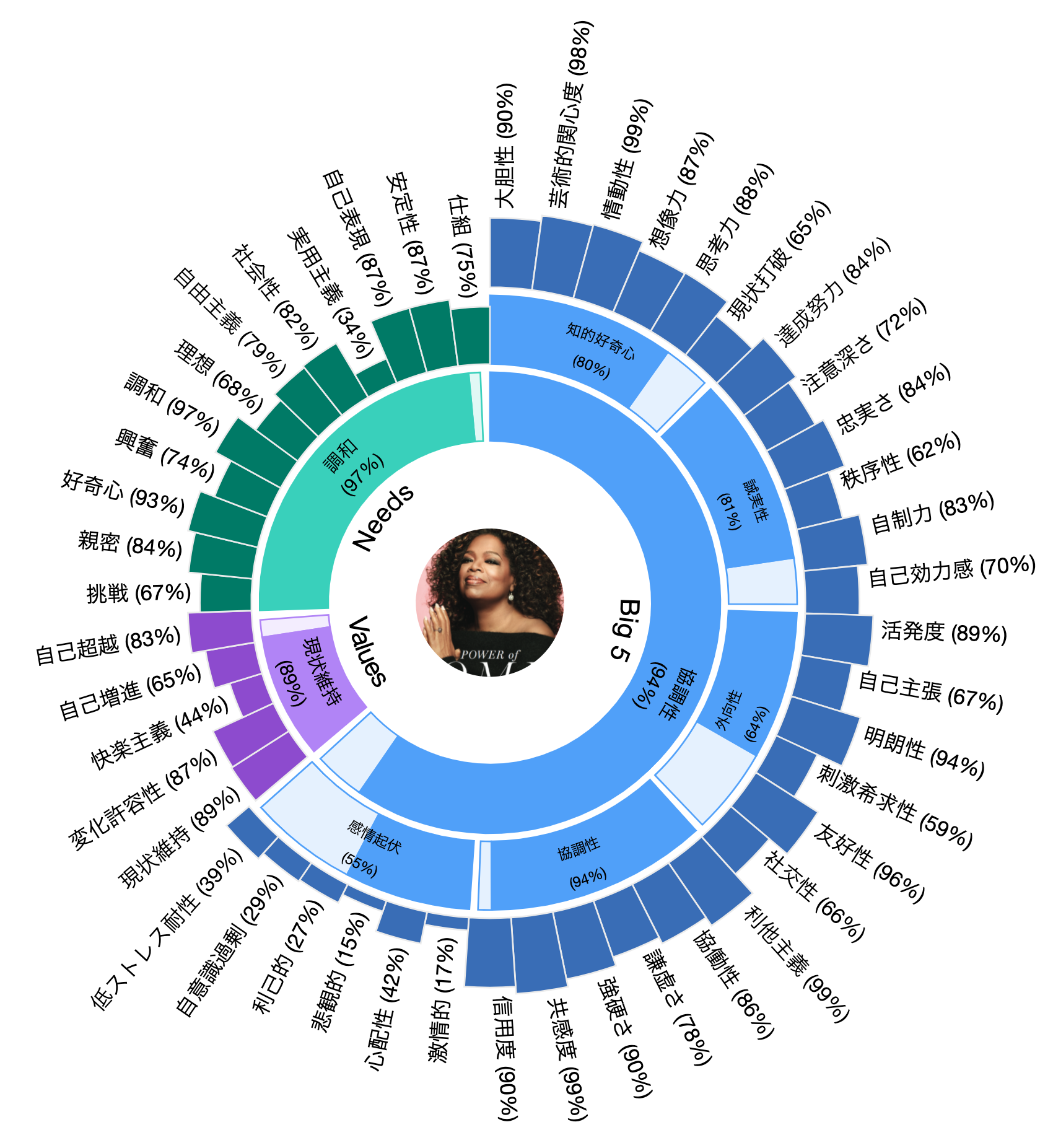 作例はOprah Winfreyのツイートを元にした分析結果。