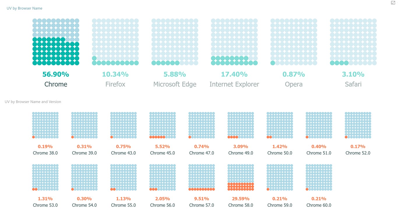 ワッフル・チャートは、データの割合をわかりやすく「マスで数える」形で伝える、ビジュアル的で教育効果の高いチャートです。