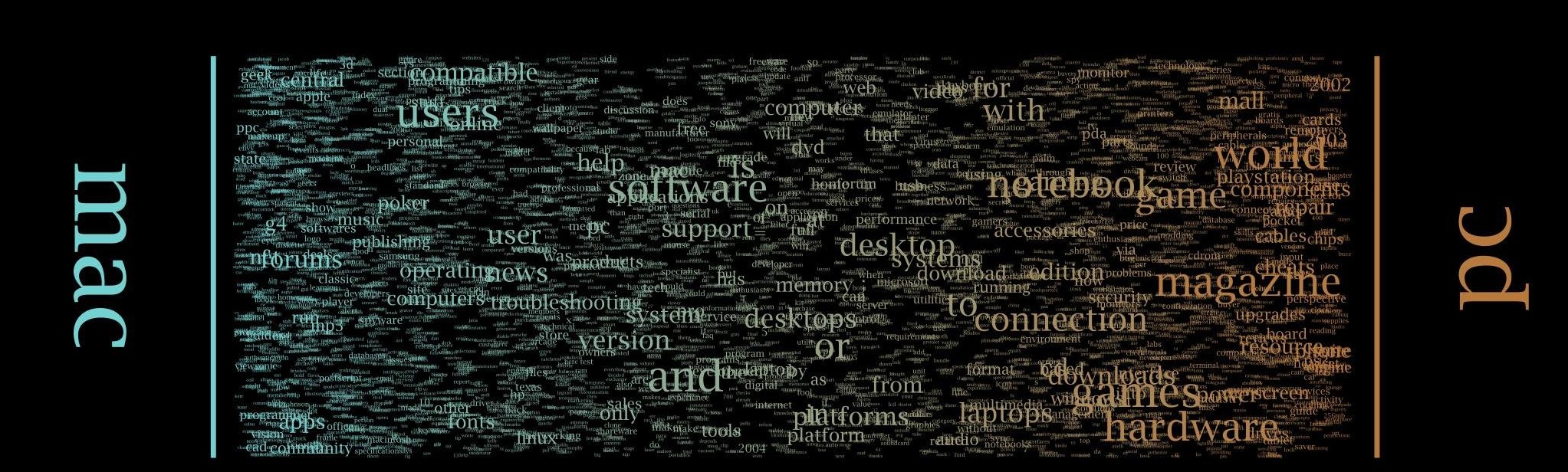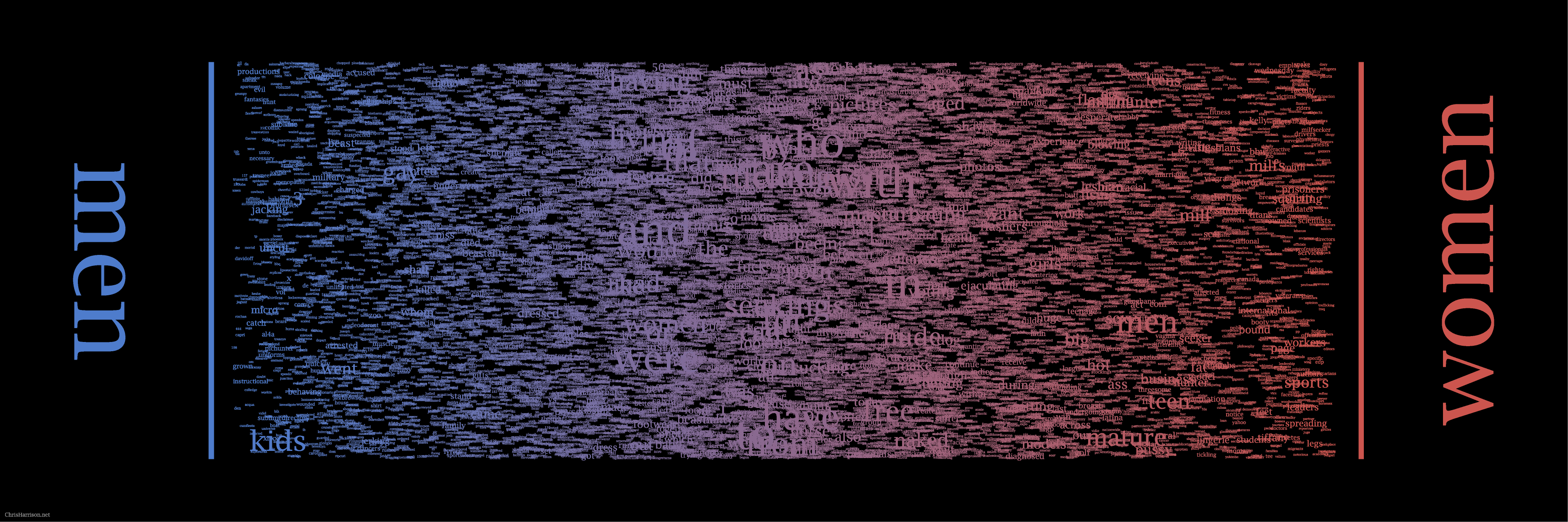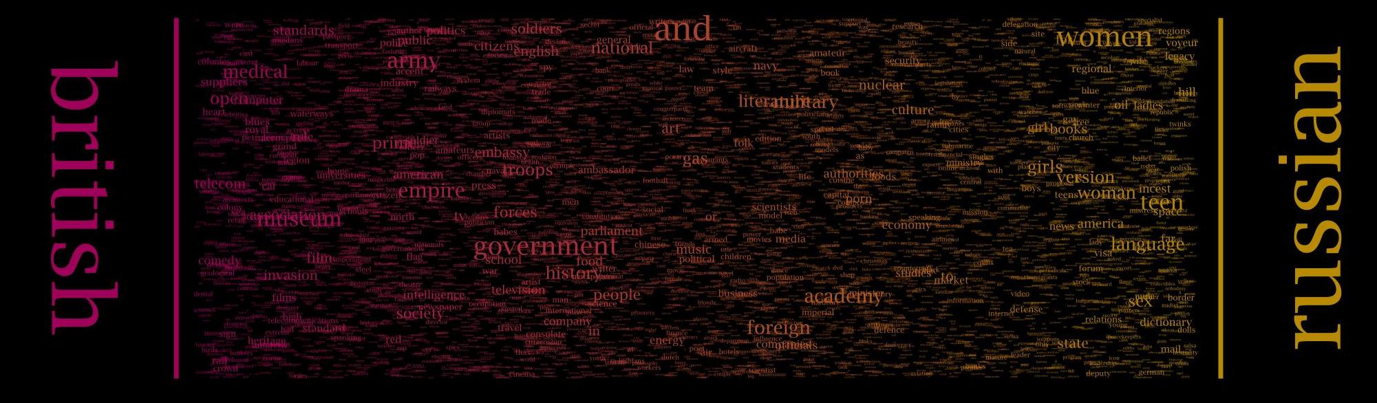 Harrison 氏の Word Spectrum では、この中の バイグラム(bigram) を用います。具体的には「主要語 A」と「主要語 B」を決め、それぞれに続く語の出現頻度を比較するのです。